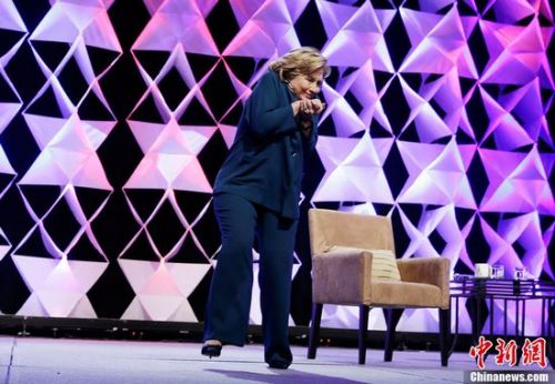 希拉里在拉斯维加斯演说遭女子丢鞋 成功闪避