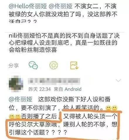 粉丝们直接将戏中的角色和艺人的生活牵扯到一起。我们只是怕七大姑八大姨突然的关心,一本正经用过来人的姿态指点你的人生;艺人们的粉丝可是比“七大姑八大姨”更可怕了。言语极其激烈: