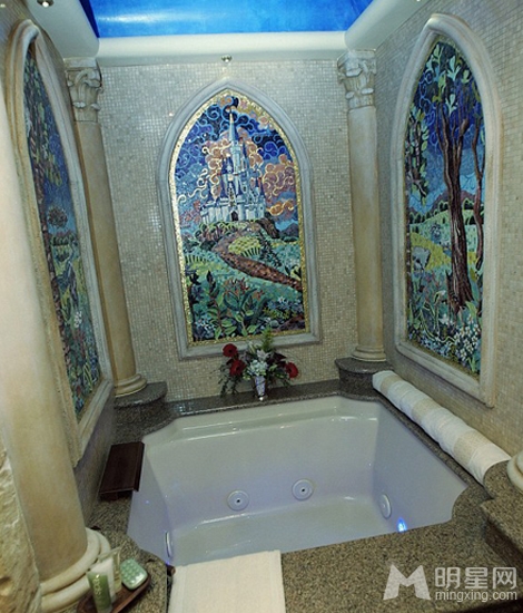 迪斯尼灰姑娘城堡套房一共有四层,建筑风格俨然是童话里的世界,华丽无比的卧室、彩色的玻璃窗、梦幻奇特的浴室,这些都是每一个女孩想象的童话世界在这里都实现了。在这里还有私人教练和24小时的贴身保镖,苏瑞在这里可真的是做了一回公主梦,玩的乐不思蜀。