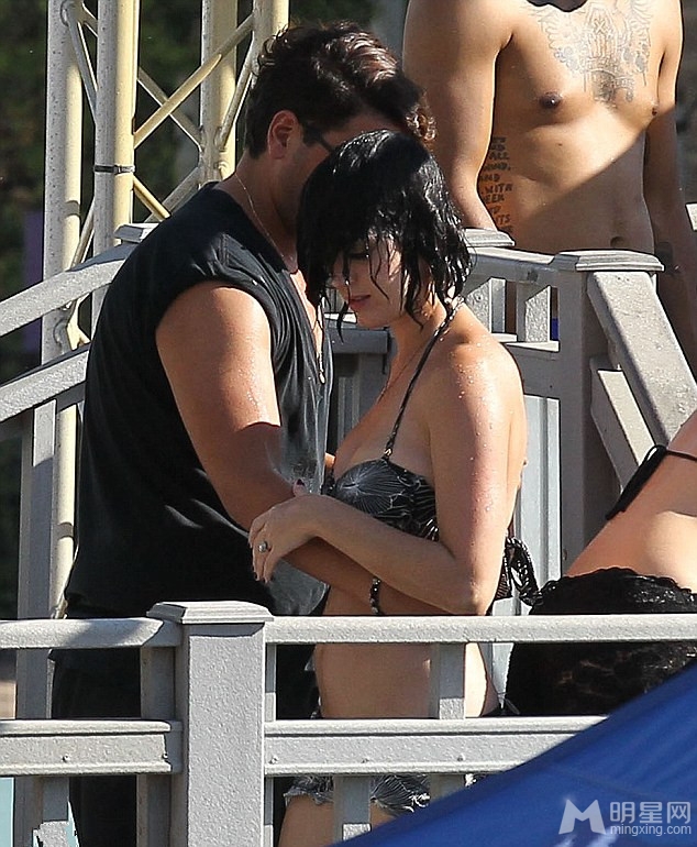 神秘男子貌似在帮凯蒂·佩里整理泳衣