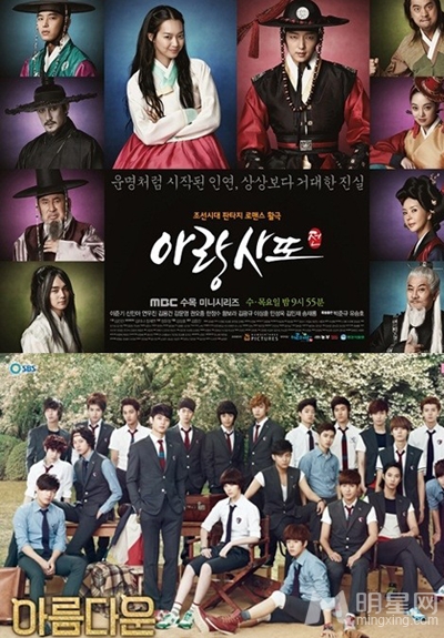 16日,收视率调查公司AGB Nielsen Media Research统计结果显示《阿郎使道传》为13.3%,而《致美丽的你》则以7.3%,与《阿郎使道传》相差6.0%而落后,《阿郎使道传》中,申敏儿凭借搞笑的演技与李准基多样的面貌,获得观众的喜爱。此外《致美丽的你》讲述了浪漫的青春校园爱情故事,讲述了具在熙(雪莉饰演)女扮男装并混进姜泰俊(珉豪饰)所在的男子高中的故事。