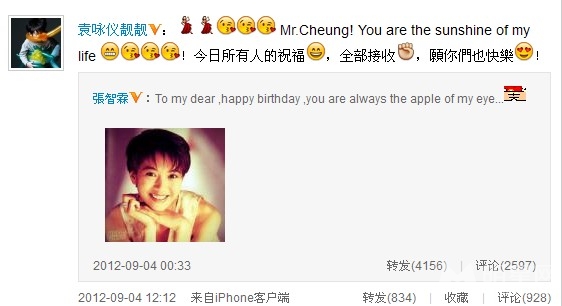 袁咏仪生日 老公张智霖送上甜言蜜语