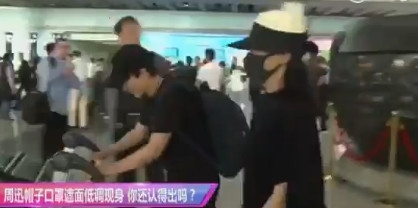 周迅穿着一身黑装现身机场,并戴上帽子、口罩遮脸,几乎快遮住全脸,相当低调,但仍被“大陆第一狗仔”卓伟的人发现,当时狗仔们正在做直播,见到她便马上前去采访,没想到才问她“你是从哪儿过来呢”,周迅就酷酷地回一句“我不想直播,谢谢”,说完就走了,留下狗仔自己缓解气氛,场面一度尴尬。