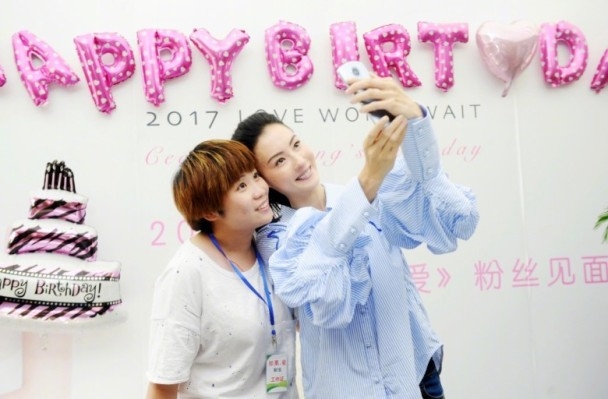 而跟她一起拍剧的伙伴吴建豪,亦代表剧组向柏芝送上鲜花,之后,众人一起玩Bingo游戏,最后柏芝更与粉丝们逐个自拍,亲密头挨头, 为生日会划上完美句号。