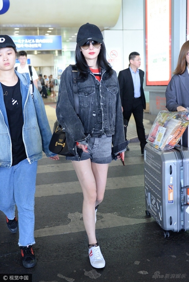 明星网资讯, 6日,杨幂现身北京机场。大幂幂以一身超级减龄的牛仔造型现身,露出万年不变的超细美腿,秒变十八岁。