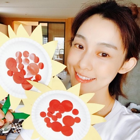 照片中,只见范玮琪以素颜入镜,身穿白色上衣,手里拿着2朵太阳花,对着镜头露出灿烂微笑,仔细一看,花朵是由白色纸盘和色纸做出来的,盘子中间布满大大小小的红色圆圈,以此取代为花蕊,儿子们的用心诚意可想而知。