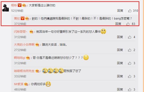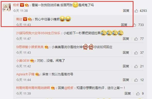 而很少活跃的小包总杨烁也被这个照片逗乐了,过来说大家就是骗她的,说蒋欣的照片是照片啊,结果心疼蒋欣的网友都来怼小包总了,也是搞笑得很。