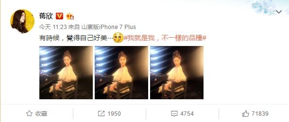 明星网资讯 最近蒋欣又开始在微博上作妖了,大中午的就发了三张照片,还很自恋的说自己好美,哥心想蒋欣本来就很美,发自拍了高兴一下的心情还是能理解,结果哥点开照片看后简直大吃一惊,果然还是娘娘的作风啊!