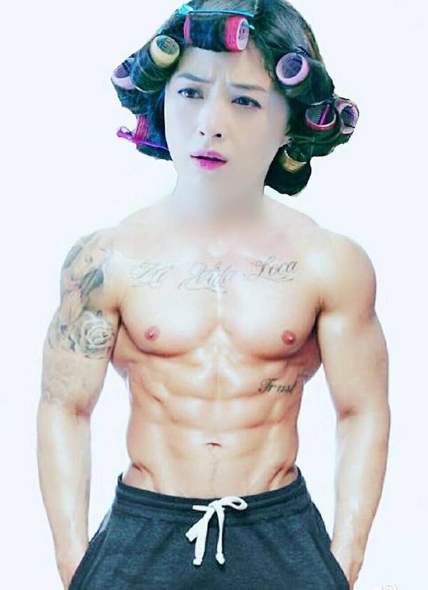 不过最搞笑的是网友给蒋欣P的这张肌肉图,一个包租婆的发型配上肌肉身材,而且看着还毫无PS痕迹,网友的才华啊,不过蒋欣自己看着也笑的好开心!