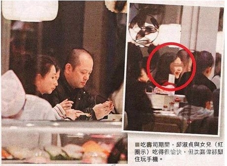前晚,沈嘉伟偕太太邱淑贞和大女沈月,在利园商场门外下车后,便直入希慎广场吃日本菜。两父女更边行边聊,但聊着时,沈月突然面色一沉。直至入了餐厅坐下后,沈月见到美味的回转寿司,才有笑容。两母女即迫不及待的拿寿司来吃,但沈嘉伟仍不断玩弄电话,似乎有心事。