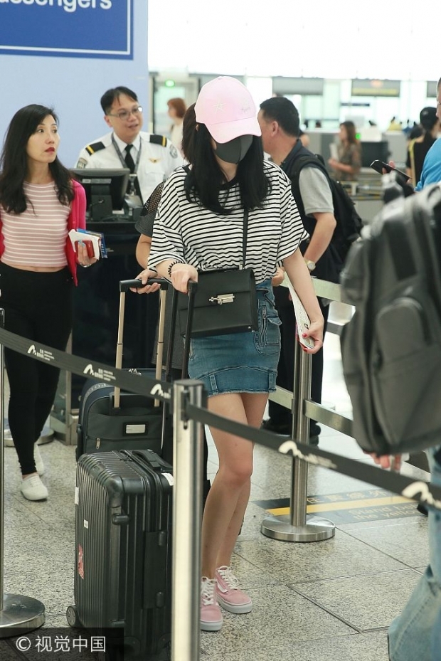 明星网资讯,杨幂日前到港,由老公刘恺威亲自接机,机场放闪大哂恩爱。29日杨幂启程回京,下午近二时,杨幂独自现身机场,未见刘恺威伴随。身穿短裙的杨幂大秀长腿,并戴著口罩和粉红色帽子甚为抢眼。