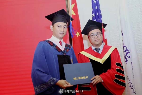吴奇隆从教授手中接过毕业证书