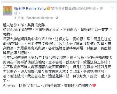 杨丞琳发长文