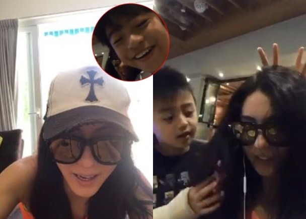 一开始,栢芝独自玩直播,介绍身边的工作人员,谁知小儿子Quintus突然入镜头,用英文同张柏芝对话,又玩妈妈的头发。期间,大仔Lucas又突然入镜抢FO,至于Quintus继续玩栢芝的头发,用英文大赞栢芝的头发好柔顺,叫她不要剪头髮,古灵精怪的Lucas就时不时霸住个镜头,相当搞笑!