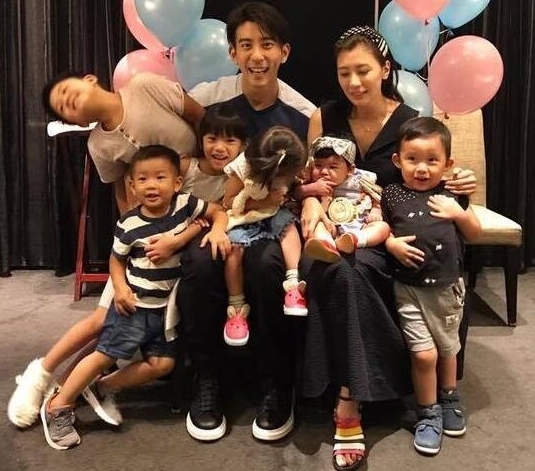 贾静雯夫妇带咘咘、Bo妞与小朋友们合影