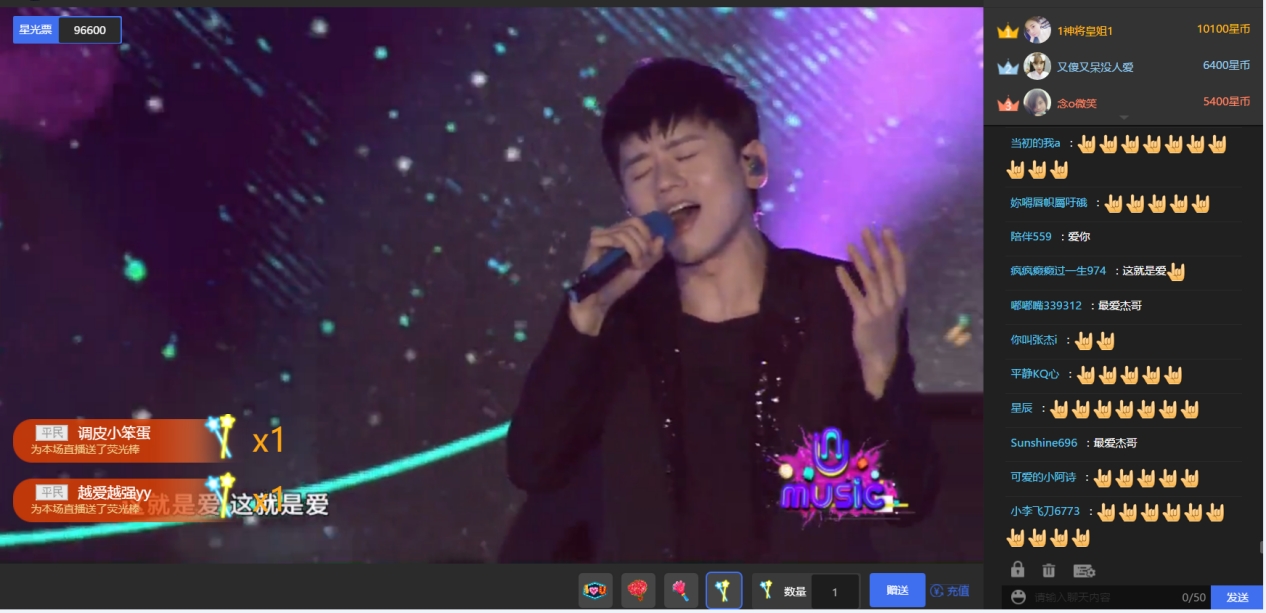 因为最近一直在做巡回演唱会,张杰表示这次来广州演出就相当于一次休息,特别感谢这次的演出机会以及粉丝们的支持,“大家都是因为爱聚集在这里”,所以,杰哥最后以一首2010年连续9周刷榜冠军的歌《这就是爱》送给大家,伸出经典手势掌控全场,不仅现场观众被引爆,酷狗直播评论区也被手势疯狂刷爆,真爱无需多言,手势说明一切!