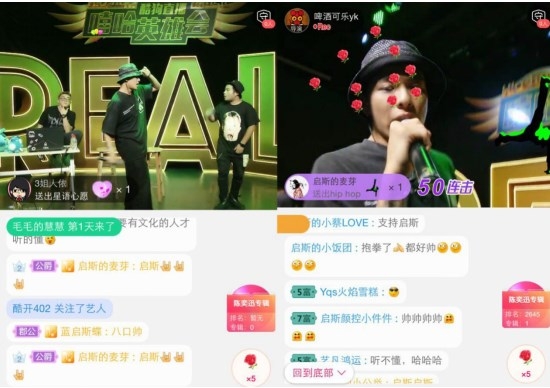 随后,他们还献唱《good night》、《what》、《oh no》以及《new day》等嘻哈经典歌曲,粉丝还表白“虽然听不懂,但是帅就对了”,酷狗网友的礼物刷屏更是刷到了50连击!