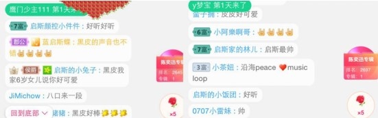黑皮老司机的封印解除后总是一言不合就开车,连粉丝家“6岁的女儿”都说“你好可爱”,启斯的粉丝也一直热情不减,小迷妹们全场刷满“启斯好帅”,礼物刷到几乎死机,隔着屏幕都感受到了这股炽热的爱意。