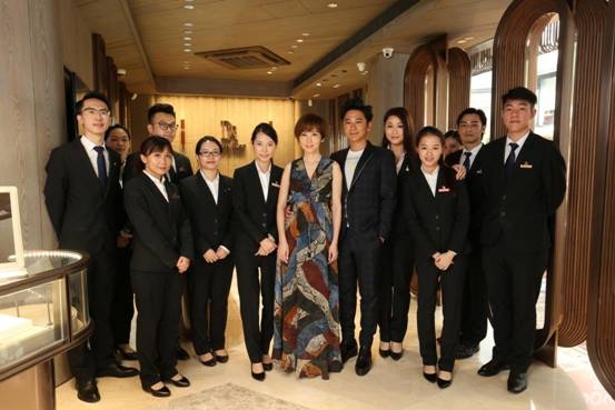 陈美诗全程笑脸心情大好,对新上的新品系列更是极为中意,大方试戴并征询店员意见。