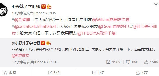 网友纷纷开始模仿鹿晗的表白句式,开始花式艾特自己的偶像。主持人李响也加入了造句阵营。