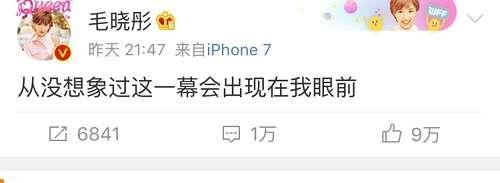 但昨天晚上毛晓彤的一篇微博引起了粉丝们的注意,毛晓彤发博称:从没想象过这一幕会出现在我眼前。