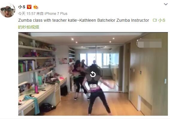 明星网资讯,10月18日,小S再次晒出自己健身热舞的视频,还配上一段文字:“Zumba class with teacher katie~Kathleen Batchelor Zumba Instructor(跟着老师katie学跳尊巴舞,我尊巴舞的领路人)”。