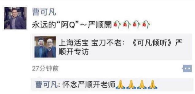 明星网资讯,10月16日消息,经上海滑稽剧团确认,著名艺术家严顺开于今日去世,享年80岁。上海主持人曹可凡在朋友圈发文悼念:“永远的阿Q,怀念严顺开先生。”