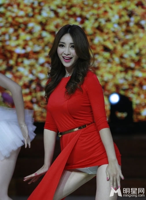 近日,柳岩亮相湖南卫视《天天向上》录制现场,在秀性感舞姿时,白色底裤若隐若现,令观众看后大呼:hold不住了。身着一袭红色贴身长裙的柳岩,将S曲线身材展露无疑,金边细腰带映衬亮金耳环,中分长卷发尽显妩媚性感,可惜外表的华丽掩盖不住扎眼的白色内裤。