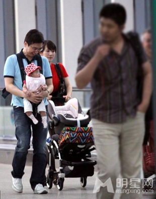 明星网资讯 5月23日,李念和老公携刚出生不久的女儿回京。李念身穿一身大红色上衣和黑色短裙,皮肤白嫩在人群中十分亮眼。李念背着黑色名牌包包推着空婴儿车,走在其前方有一个身穿蓝色T恤的男子,手推行李车还背着几个月大的baby,正是李念的老公林和平 一路上李念跟在老公身后,老公则抱着孩子笑的合不拢嘴,眼神充满爱,看得出对孩子是十分的疼爱。 李念身穿一身大红色上衣和黑色短裙,在人群中十分亮眼。在出口处有一对老夫妇接过了李念老公手中的行李车,看着怀中的孩子笑的开心,四人一齐向停车场走。将孩子及行李都摆放好后,一家五口驾车回家。