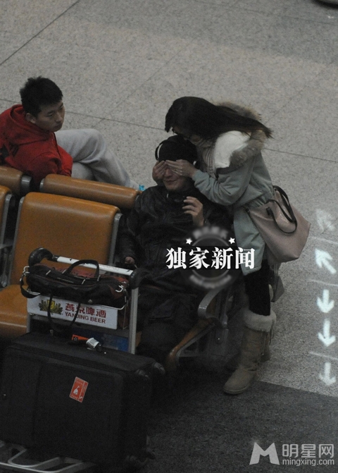 日前,记者在首都机场撞见严宽刚刚从外地返京。刚出闸口的严宽,接完电话便在等候区坐下,一边听着音乐一边浏览网页,显得很是悠闲。不一会儿,一名长发女子突然从身后将严宽双眼蒙住,随即便转到身前,与严宽拥抱接吻。随后记者认出,这位与严宽甜蜜嬉闹的女子正是严宽女友杜若溪(原名杜晓婷)。与女友一番甜蜜后,严宽这才发现脚下由女友带来一同接机的爱犬。随后,女友兴奋地推起严宽的行李车,而严宽则双手空空如也地跟在一旁,爱犬则乖乖滴趴在行李箱上,“一家三口”甜蜜地走至停车场,一路径直返回爱巢。