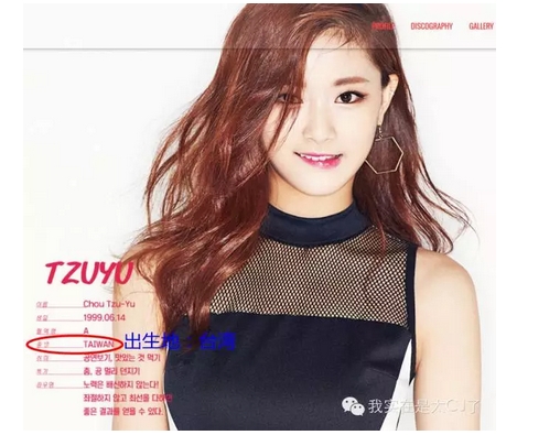 事情的起因是JYP公司推出了一个新女团TWICE,里面的台湾成员周子瑜公开在各种场合说自己是台湾人,拒绝承认是中国人,她的JYP官方资料写的国籍也是台湾。