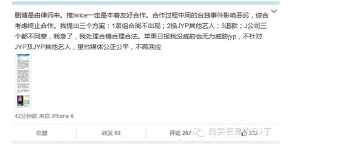 对于今天JYP方爆出:“不能在台湾和中国之间做选择”的说辞,网友彻底怒了,大家是这样评价的: