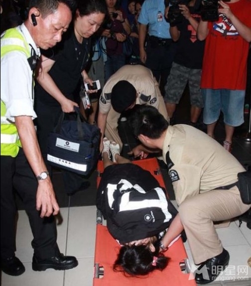 2012年5月5日,香港,Lady Gaga在机场博览馆举行第三场香港站个唱。大批歌迷提早到会场等候入场,一名女粉丝突然晕厥,警方赶来将其送走。