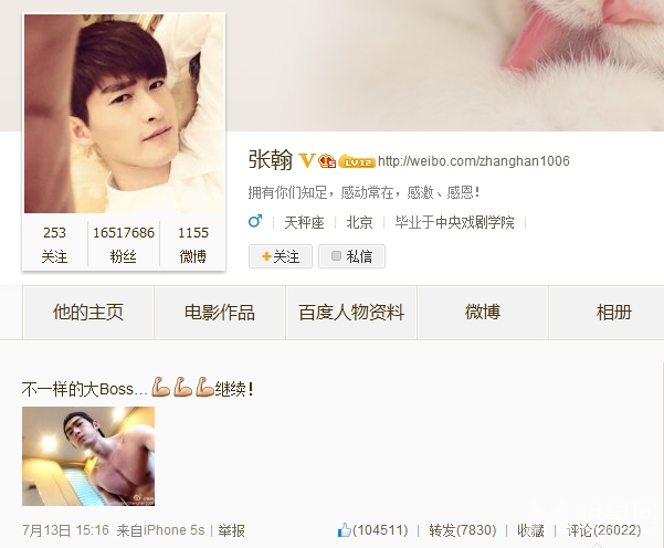 张翰微博发放福利裸照 承包鱼塘范儿足