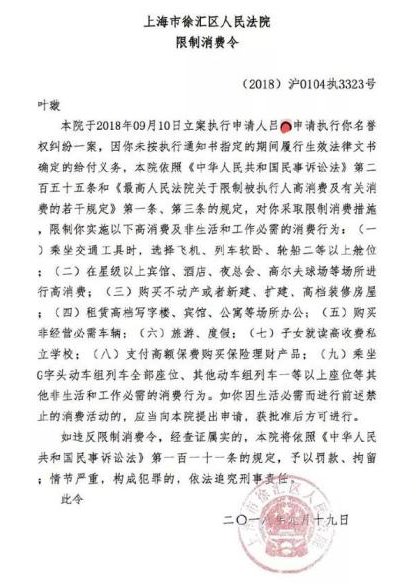 今天,叶璇被传唤至徐汇法院,向申请人代理律师递交署名道歉信。徐汇法院因叶璇拒不履行法院生效判决且违反限制消费令对其训诫并罚款8万元。叶璇认识到自身法律意识不强,表示接受法院处罚,并现场缴纳罚款。至此,该案执行完毕。