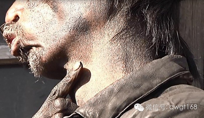 据村民说,这位怪人名叫上官位国,今年51岁,大概在19岁的时候因为感情问题导致精神有些失常,之后用机油之类的东西把自己涂成黑色,他觉得这样才漂亮。