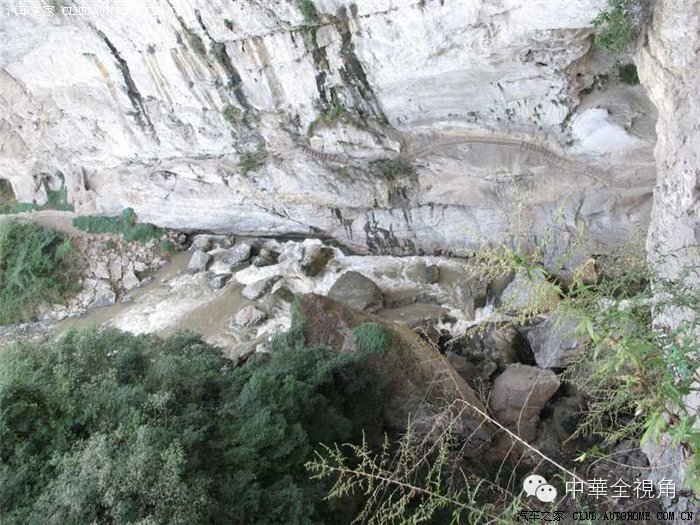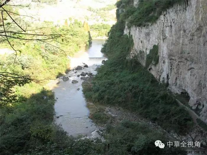 一条小河,也不知道水来自哪里?流量很大,到了断崖下就断流了,水就不知去向。
