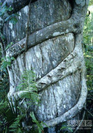 勒颈无花果原产于美洲,是一种寄生树,其会将种子植于另一棵树中,直到它的根系长出缠绕在树干上,最终将寄主杀死。