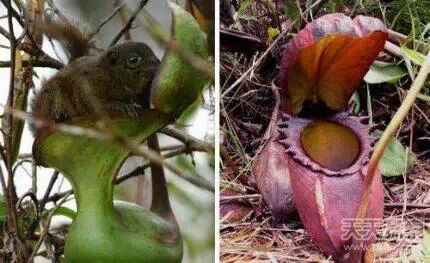 猪笼草是一种可怕的能吃动物的植物,其属于热带食虫植物,原产地主要为旧大陆热带地区。猪笼草拥有一个独特的吸取营养的器官,就是它奇特的叶子。它的叶片中脉伸出去变成卷须,可以攀附着别的东西向上升。卷的顶部生出一个囊状物,好象奶瓶子一样,口上有一个盖,能开也能关。瓶口边缘一般向内卷,瓶内有半瓶子水液。瓶口内壁能分泌又甜又香的蜜汁,贪吃的小昆虫闻到香味就会爬过去吃蜜。也许就在它们吃得正得意的时候,脚下突然一滑,一头栽到瓶中,被水液粘住了,再也无法逃命。于是猪笼草得到了一顿美餐。
