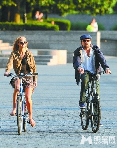 莱昂纳多与女友大玩浪漫 骑单车忆青葱岁月